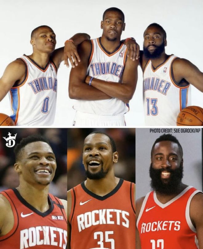 三少命運差太多!杜蘭特9000萬,哈登8150萬,威少只有360萬底薪